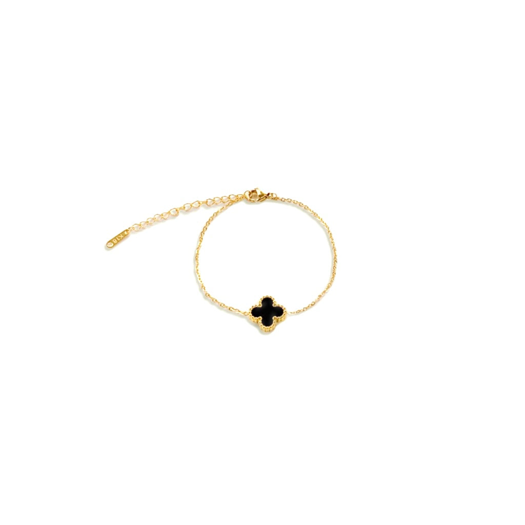 Paired with a delicate chain bracelet, the flower-inspired pendant features delight luck motif in miniature form. This bracelet can be worn on both sides. Stack with a simple chain for a delicate arm stack.